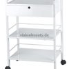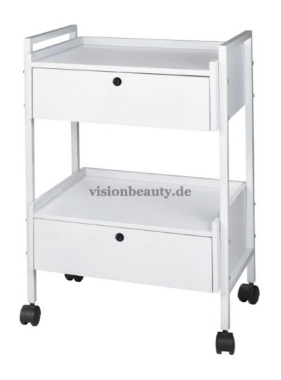 Wagen mit metallischem Rahmen, 2 Etagen und 2 Schubfächern mit Schlüssel. Sein Design erlaubt Ihnen Arbeitswerkzeuge auf beiden Schubläden abzustellen. Uneingeschränkte Bewegung dank seiner 4 Räder.