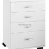 Wagen mit weissem metallischem Rahmen in modernem Design. Es verfügt über 4 Etagen und einem Stoffbehälter an der Seite. Uneingeschränkte Bewegung dank seiner 4 Räder.