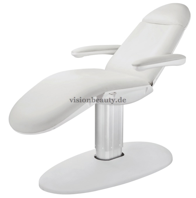 Hochwertige Liege in minimalistischen Design, dessen Rahmen maximalen Komfort bietet. Es verfügt über drei Motoren um die Höhe, die Neigung der Rückenlehne und die Neigung des Sitzes zu regulieren. Die Fußstüze ist mittels Gasfeder regulierbar. Armlehnen beidseitig verstellbar. Hochwertige weiße PU- Polsterung, leicht abwaschbar.