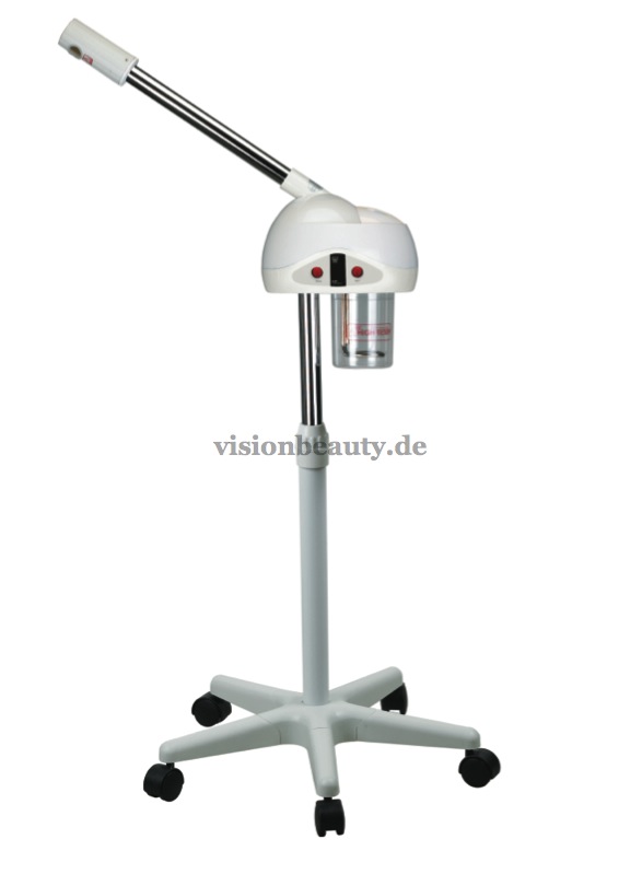 Bedampfer mit Ozonlampe. Er hat ein einfaches, leichtes und funktionelles Design. Ausgestattet mit einem Teleskoparm um die Höhe zu regulieren und einem drehbaren Kopfstück.