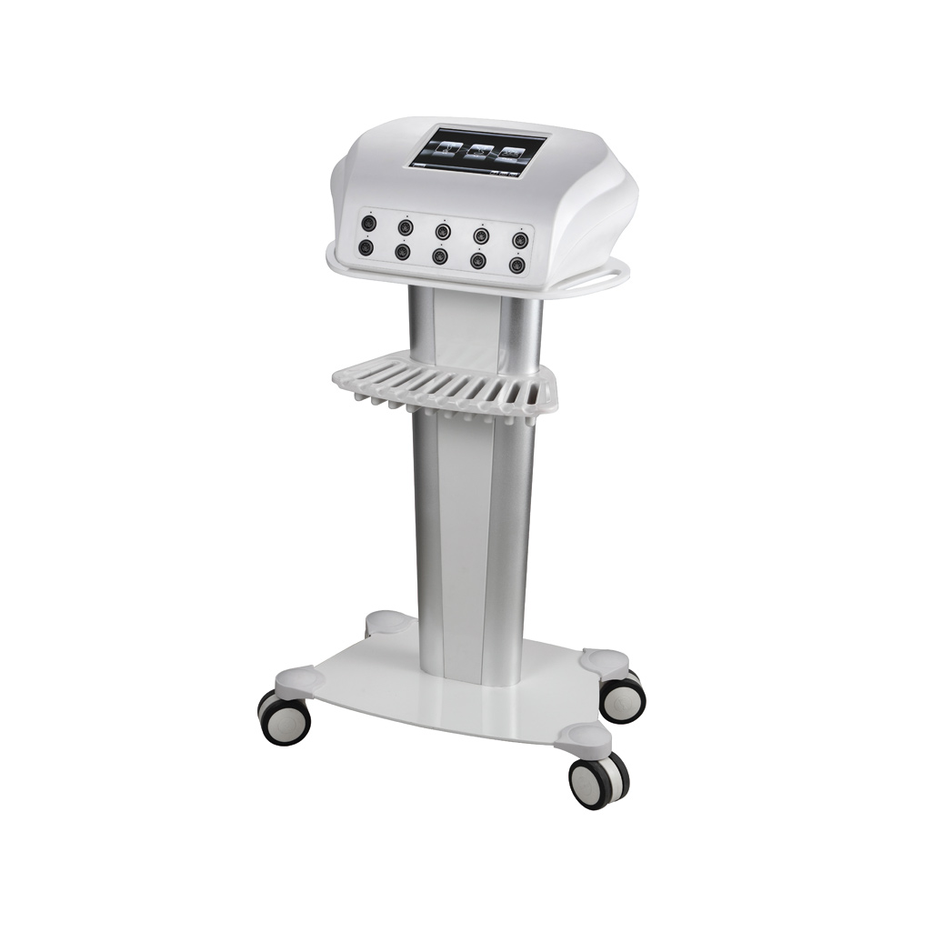 Digitales Elektrostimulationsgerät mit Touchscreen. Auf einer Säule montiert um Kabel und Elektroden perfekt verstauen zu können. Mit 10 Ausgängen ausgestattet.