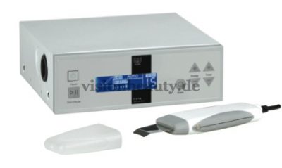 Professionelles Peelinggerät für das Gesicht, mit Spatel und Armband.