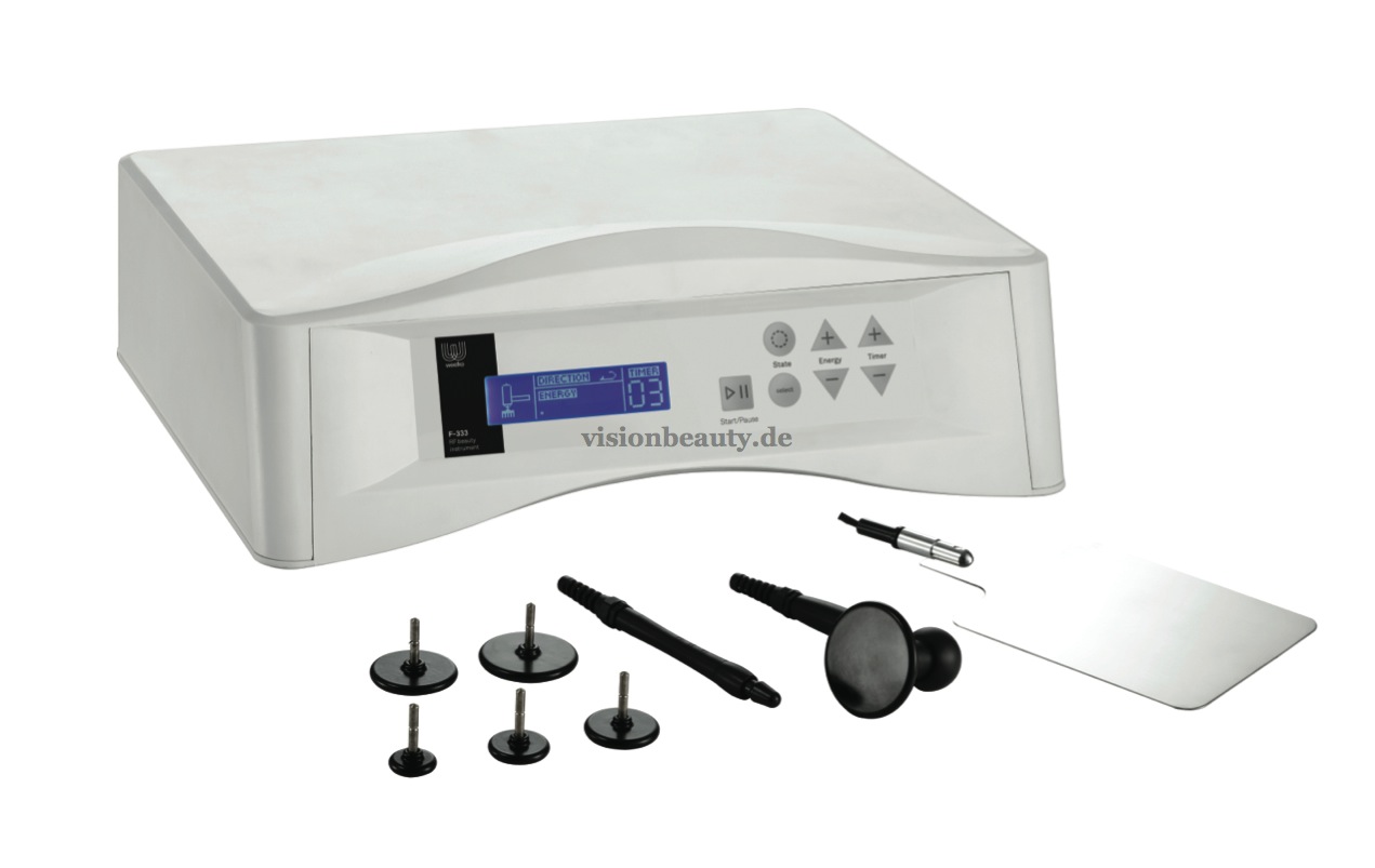 Radiofrequenzgerät für ästhetische Gesichtsbehandlungen. Das Gerät erzeugt Wärme was im Körper dazu führt, dass sich das kollagene Bindegewebe umgruppiert und strafft. Ausgestattet mit
