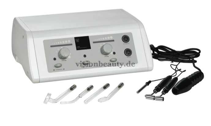 Das Gerät kombiniert Hohe Frequenz und galvanischen Strom. Perfekt um Gesichtstiefenreinigungen durchzuführen.